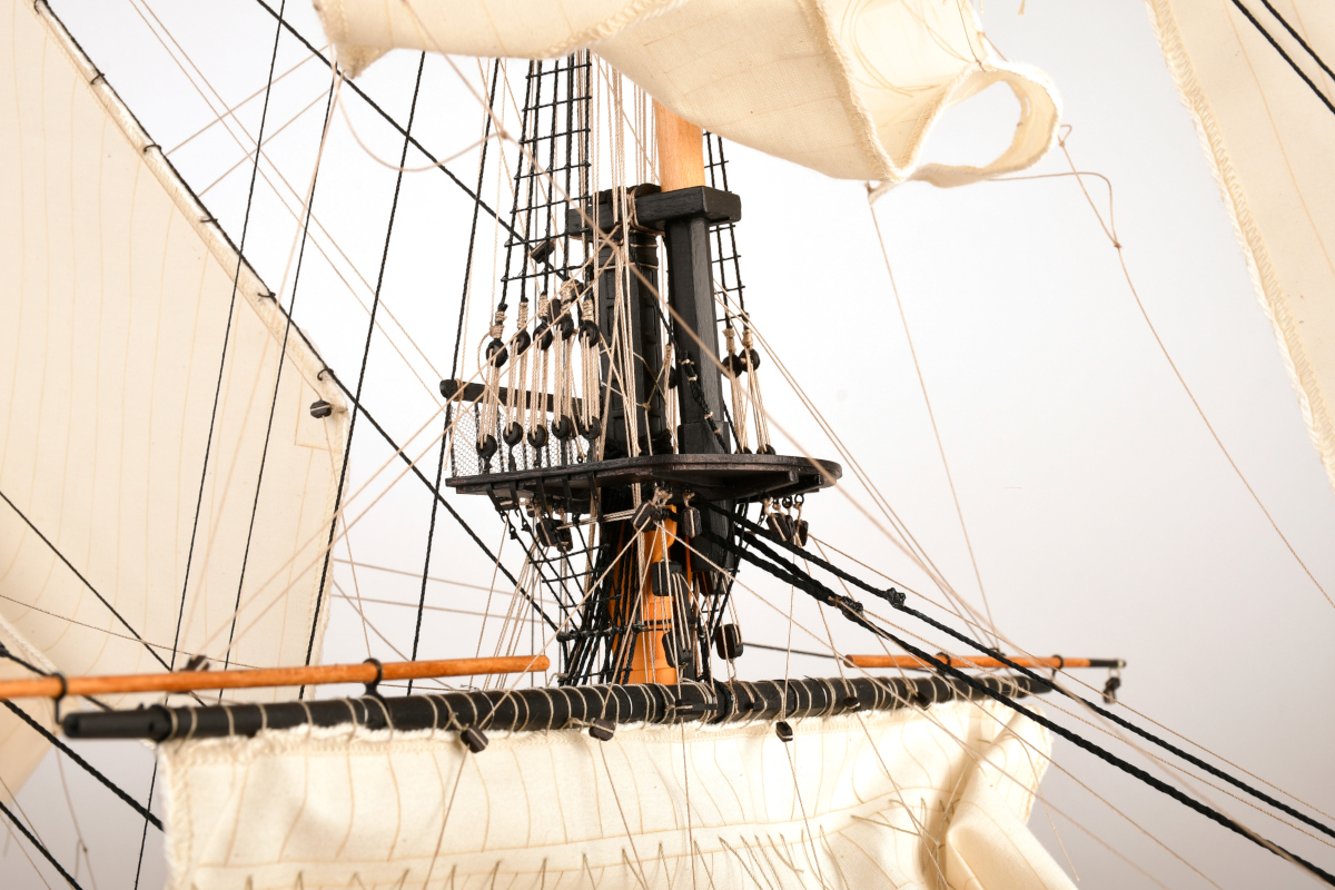 Im Bausatz finden sich 3 große gedruckte Pläne mit Ansichten des Modells, Teile Identifikation und Zeichnungen für Masten und Takelage.