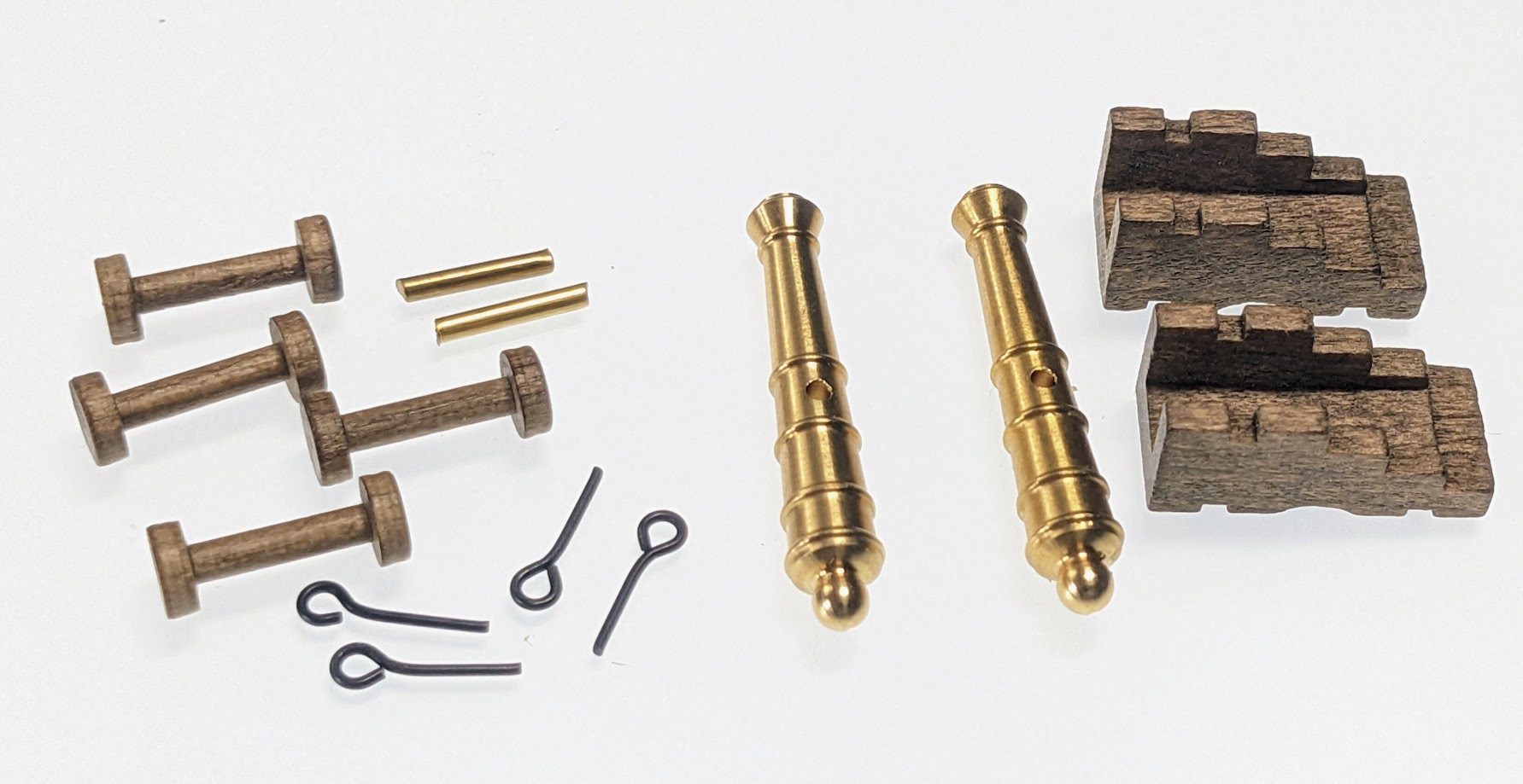 Cannon kit with 30mm barrels (2) Historical ship cannons Brass cannon barrel with wooden... more