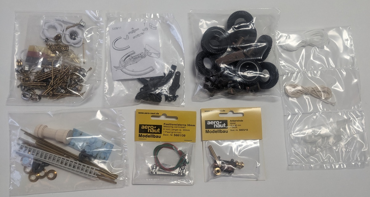 Fittings set for the Torben harbour tugboat. Consisting of: -60 mm cast metal tow bar -15 x... more