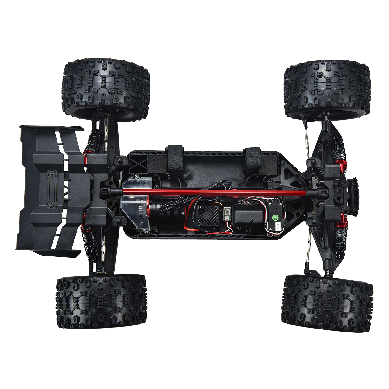 The reinforced nylon chassis with 6061-T6 aluminium skid plates at the front and rear guarantees stability even on hard landings. Factory-fitted, oil-filled aluminium shock absorbers, reinforced wishbones and grippy off-road tyres, which offer reliable traction on gravel, grass or asphalt, ensure optimum control.